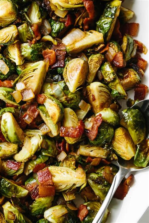 - Serve roasted Brussels sprouts with bacon and balsamic vinegar as a side dish with grilled or roasted meats.